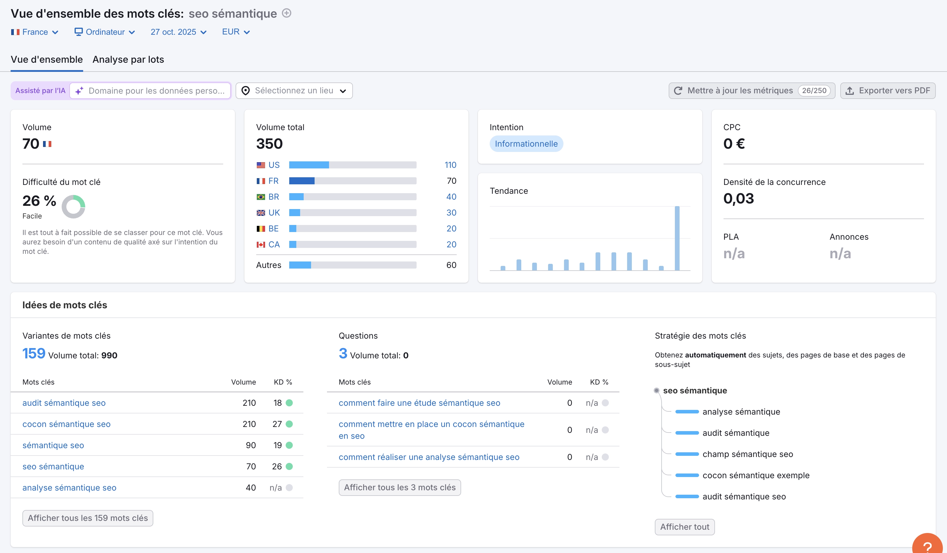 - Évaluer votre stratégie de mots-clés actuelle et découvrir de nouvelles opportunités